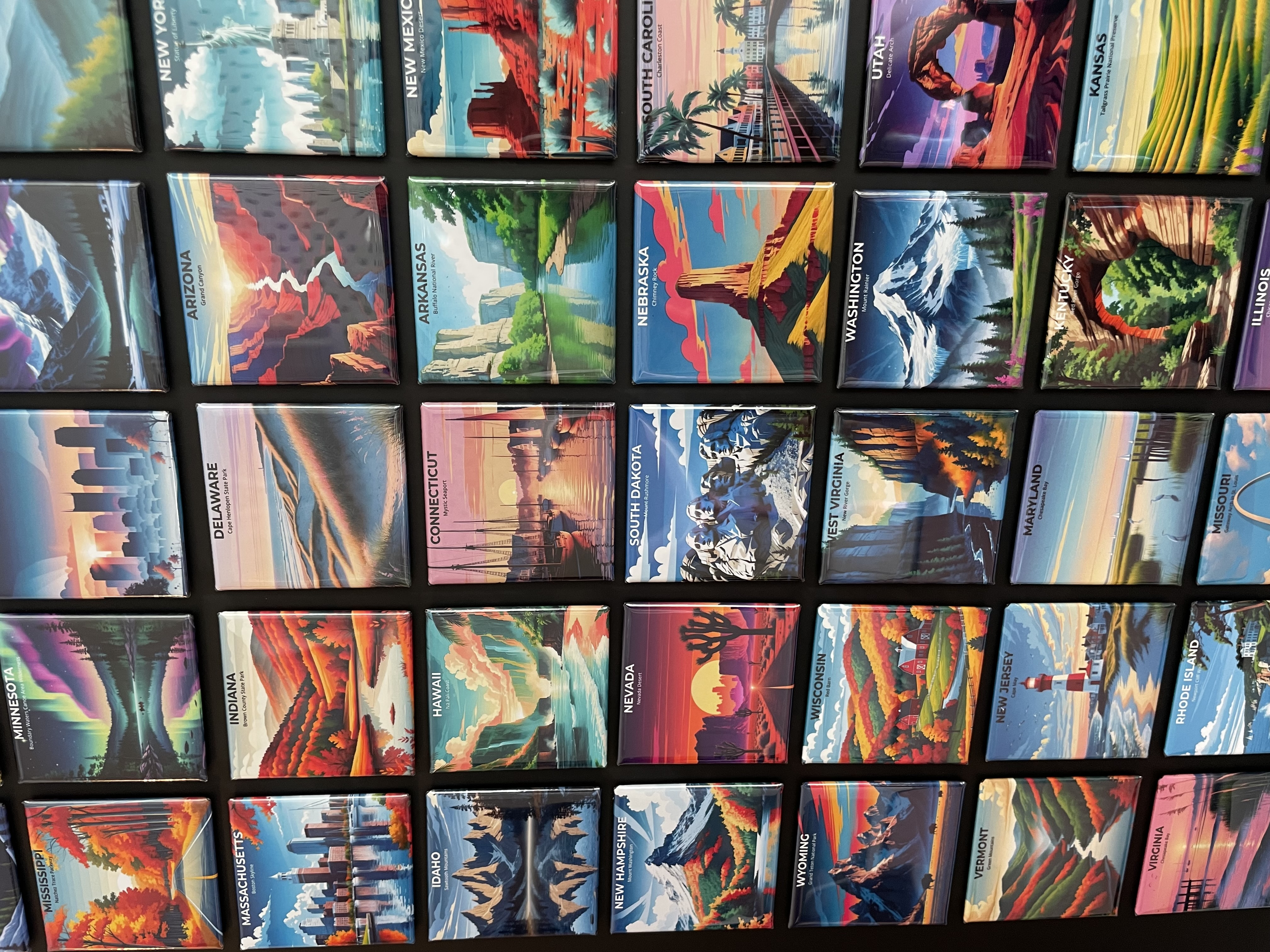 Each magnet is handmade in the USA, crafted with care and vibrant detail to ensure lasting quality and charm. Whether you're commemorating a cross-country adventure or simply admiring the nation's wonders, this set is a timeless tribute to the land of the free.